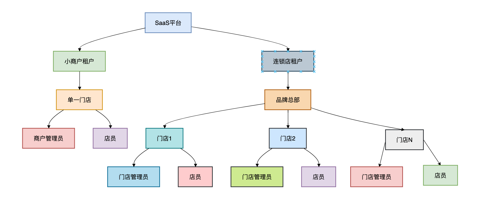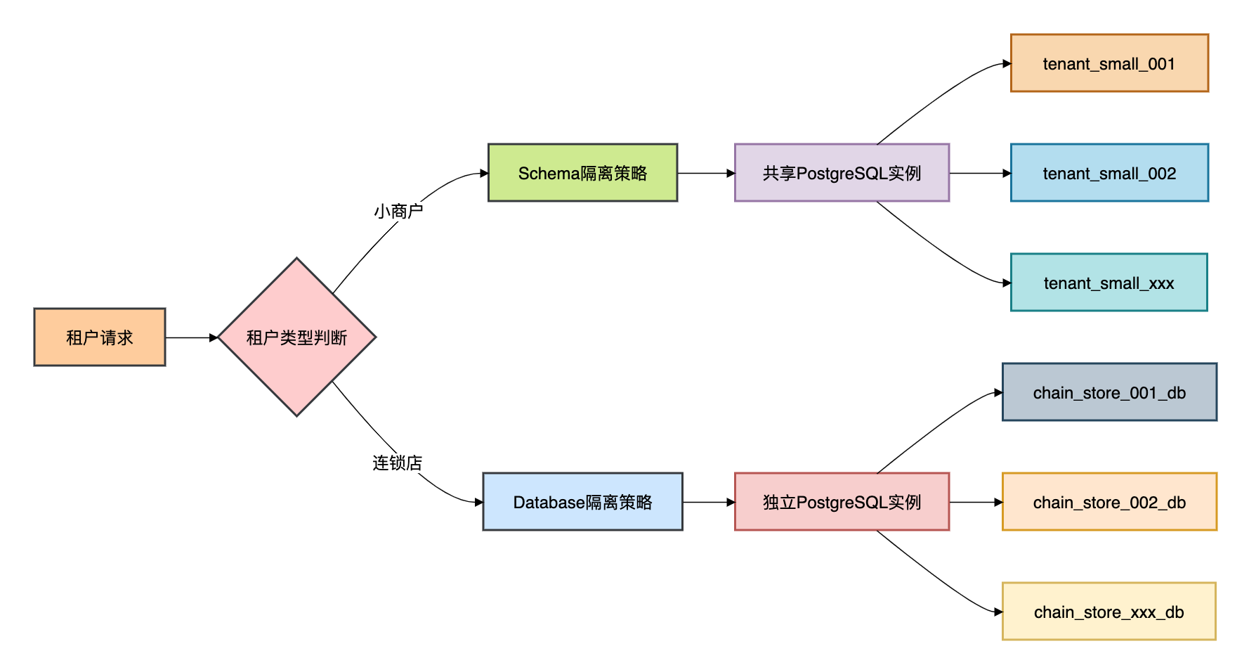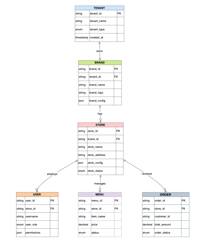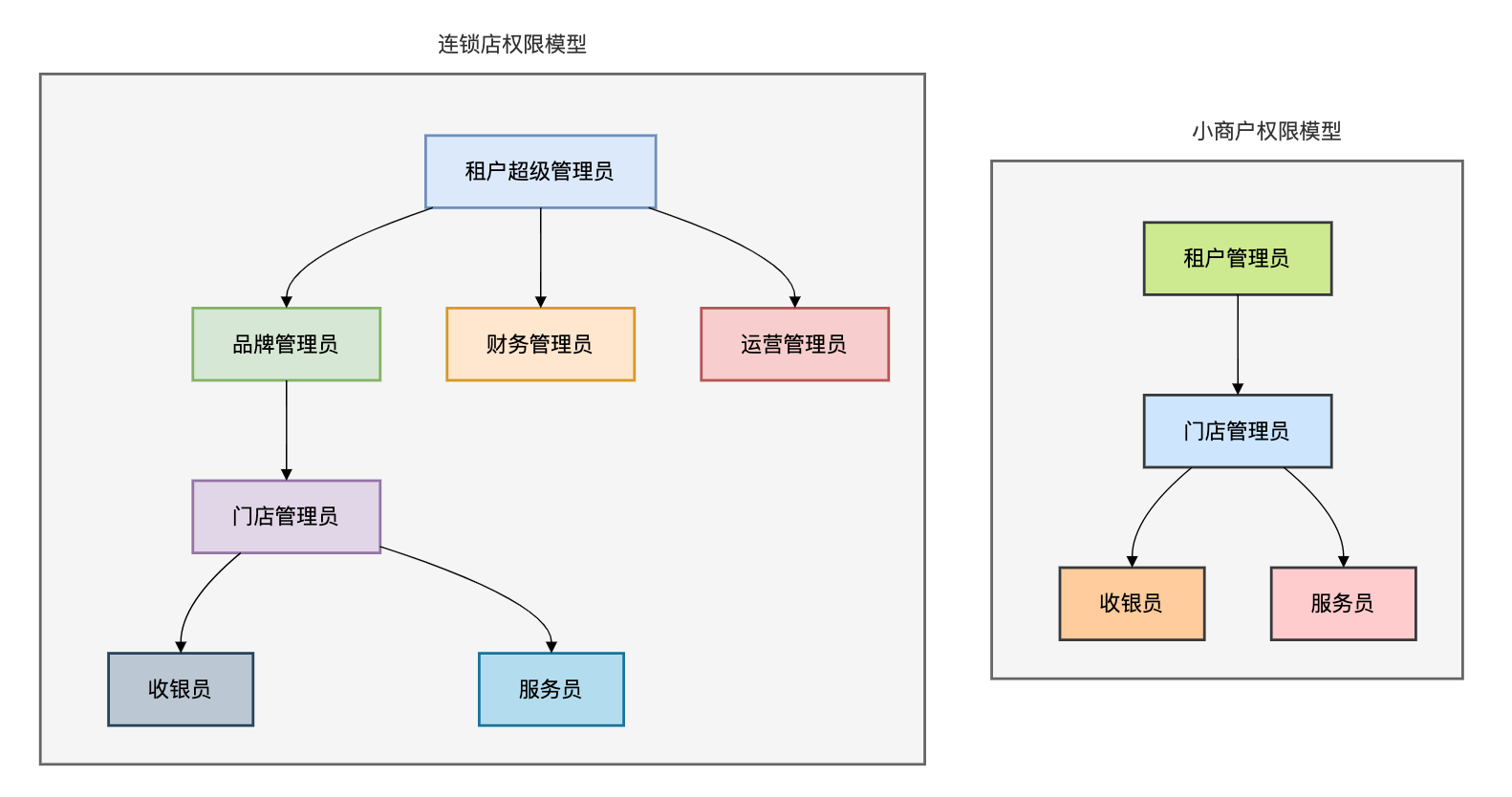 | 租户层 | 小商户租户 | 连锁店租户(品牌) |